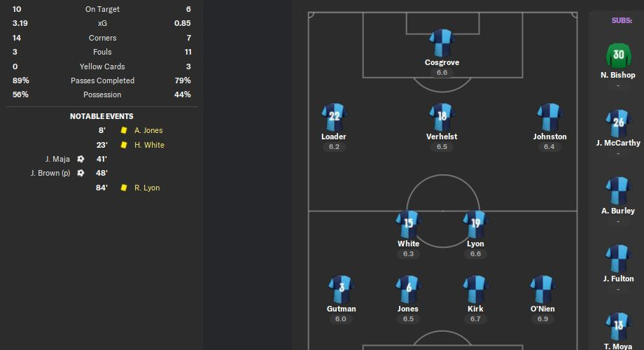 The solitary 3 points left us with 44 points from 30 games and sitting in 11th place in the league.