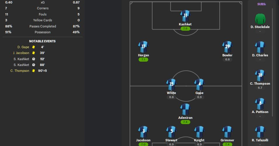The comforts of home were calling, with Millwall the visitors. We were under pressure for the majority of the match but unlike the Lions we took our chances. Kashket scoring 2 clinical second half goals on the break gave us an unexpected by much needed first win of the season.